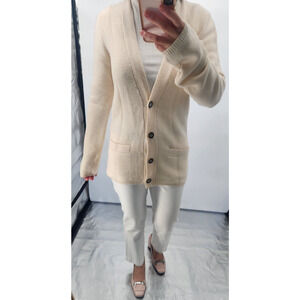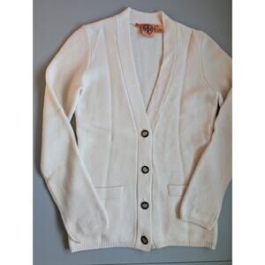 Tory Burch 100% Cashmere Logo Button Cardigan Size S Ivory #1M403