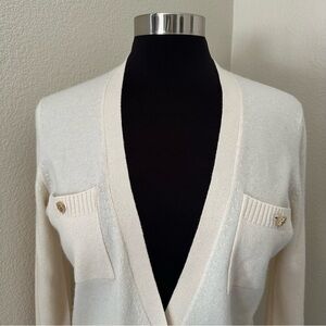 Tory Burch 100% Cashmere Women's Button Up Cream Cardigan Sweater.