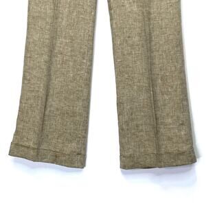 Tory Burch 100% Linen Pants Beige Wide Leg Sz 2 Logo Button Summer Luxury Y2K