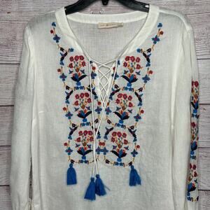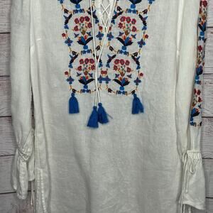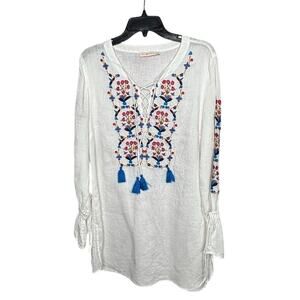 Tory Burch 100% Linen Wildflower Embroidered Swim Coverup Dress Size Medium