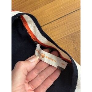Tory Burch 100% Merino Wool Madeline Navy Cardigan Sweater Medium