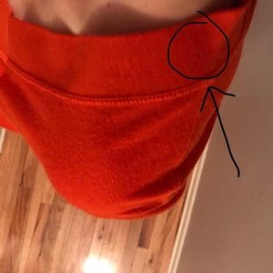 Soft merino wool. NOTE: Buttons with item for sale match the wool color. The two model photos are for styling ideas/illustration of versatility of the piece. It is the exact same Simone sweater with matching buttons rather than gold. There are two minor snags that I have attached photos to display. They are in extremely fortunate locations, one on to of the shoulder and virtually undetectable, completely undetectable if hair hangs shoulder length. The other is a small snag by the right side seam where arms naturally fall.