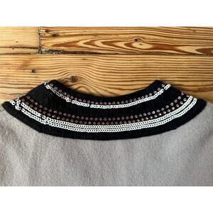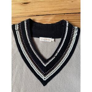 Beautiful and buttery high quality 100% Merino Wool Tory Burch sweater. Other than the noted missing rhinestone, the sequins are in great condition and so is the integrity of the sweater - seams/stitching etc...