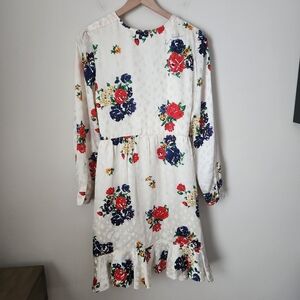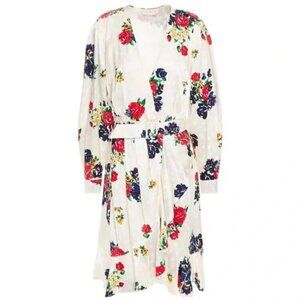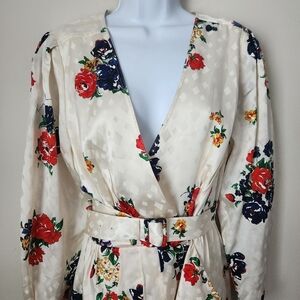 Tory Burch | 100% Silk Printed Wrap Dress with Belt in Ivory Tea Rose - Size 8
