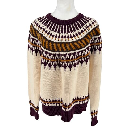 ✨ Tory Burch 100% Wool Fair Isle Sweater – Burgundy/Cream/Mustard – Size XL ✨