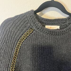 Tory Burch 100% Wool Gray Chain Link Detail Sweater Size S
