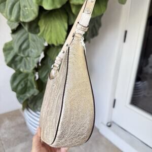 Tory Burch 159158 Emerson Metallic White Gold Refined Leather Shoulder Handbag