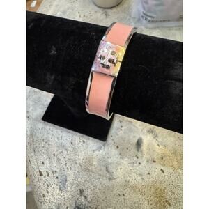 Tory Burch 18k Gold-Plated 10MM Kira Enamel Bracelet Powder Pink & Silver