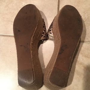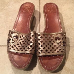 Tory Burch 2015 platinum espadrille slides. These shoes are lightly worn and still in great condition. Original box and dust bag included! Shoes are size 10 and have a 2" heel.