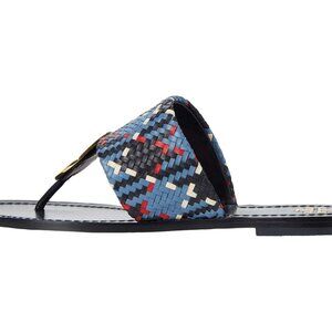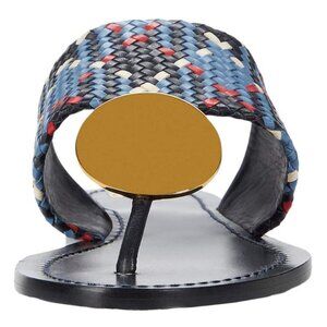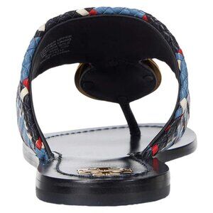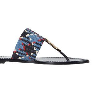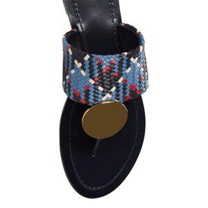 Tory Burch $268 Patos LEATHER Disk Sandal Blue Woven 10