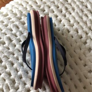 Tory Burch 3 layered platform slides. Size 9. Blue,cream,burgundy. Worn x1.
