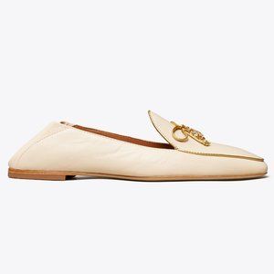 Polished and comfortable β there's something perfect about a classic loafer. Designed with a beveled Double T logo in brushed gold and detailed with a delicate bow, the Tory Charm Loafer has a menswear shape, constructed in super-soft leather. It's finished with a comfortable cushioned insole and a collapsible back β so you can wear it as a slipper, indoors or out.