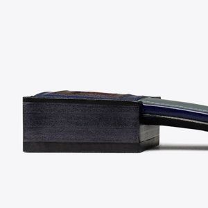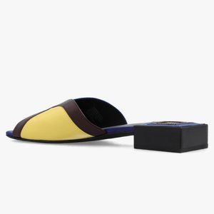 An abstract-inspired design, utilizing a meticulous assemblage of leather. Our Marquetry Slide is a modern pairing of colors and shapes, with a low heel and cushioned leather footbed.