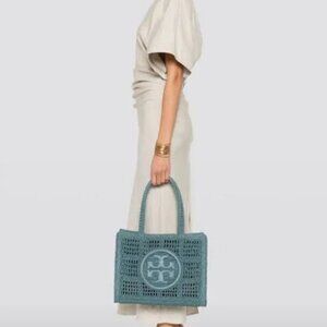 Tory Burch $395 158040 Small Ella Hand-Crocheted Tote Deep Slate NWT!