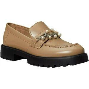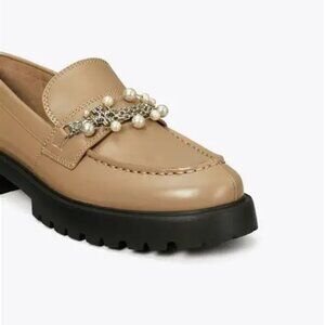 Decorative pearl and pave chains and a light-as-air exaggerated lug sole update the classic silhouette with a modern identity that is both masculine and hyper-feminine. Featuring a delicate Double T and a cushioned footbed, the elevated loafer is perfect to add a slight lift and jewelry-like embellishment into the everyday wardrobe.