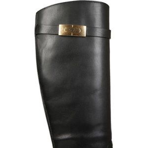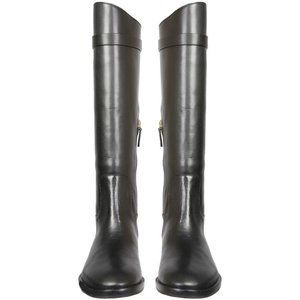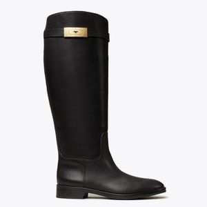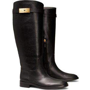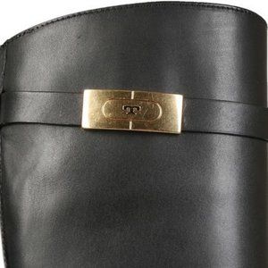 Tory Burch $528 NIB T Hardware Riding Boot Black Gold 7 9.5