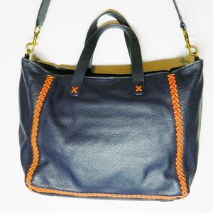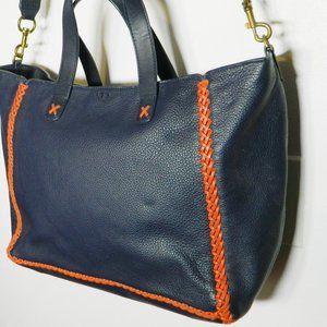 Tory Burch $595 33007 Softy Whipstitch Medium Leather Tory Navy Tote