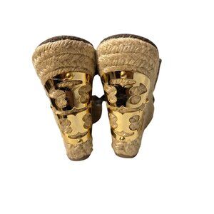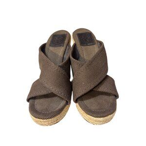 Tory Burch 6 Brown Canvas Cross Strap Espadrille Wedge Sandals Made In Brazil