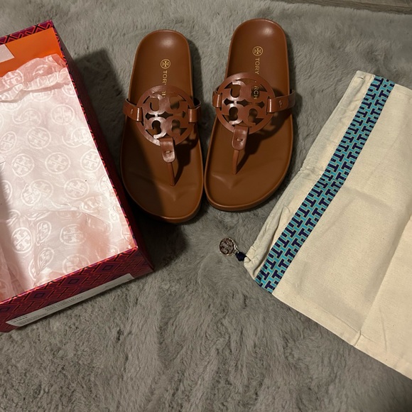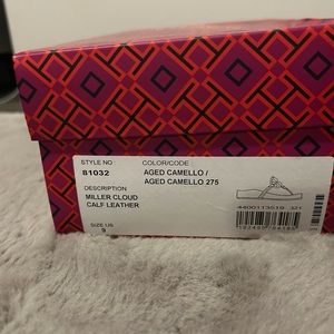 Tory Burch miller cloud in aged camello size 9 in great condition only worn about 3x just don’t reach for them as much will include box and dust bag!