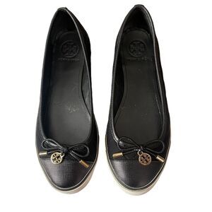 Tory Burch 7 Ballet Flats Black Quilted Bow Detail Comfort Casual Slip On