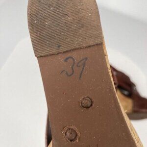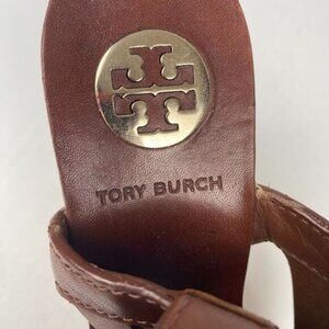 Tory Burch 7 M Ace High Wedge Platform Cork Slingback Heels Shoes Sandals Brown
