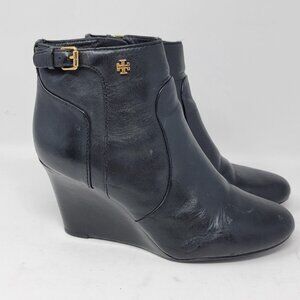 Tory Burch 8.5 M Milan Leather Wedge Black Bootie Boots Ankle