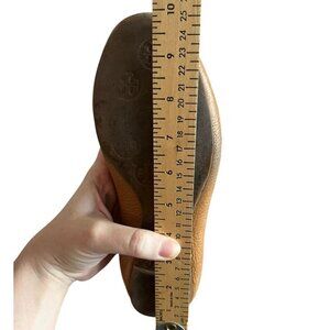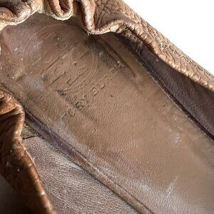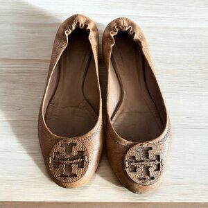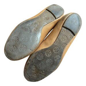 Tory Burch 9 Reva Camel Brown Tumbled Pebbled Leather Ballerina Flats Shoes