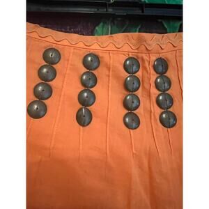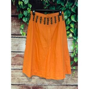 Tory Burch A Line Midi Skirt Orange w/ Bronze Studs Studded Spring Summer Size 0