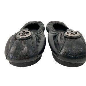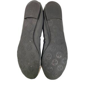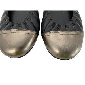Tory Burch Abbey Black Leather Ballet Flats W/ Metallic Cap Toe Size 7.5 EUC