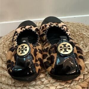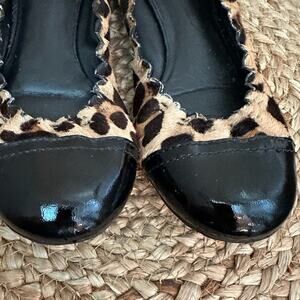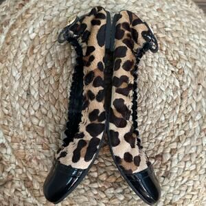 Tory Burch Abbey Leopard Print Calf Hair Patent Cap Toe Ballet Flats Size 7 M