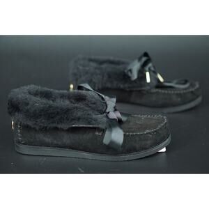 Tory Burch Aberdeen Genuine Rabbit Fur Trim Slipper Bootie SZ 5.5 NIB Black Bow