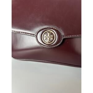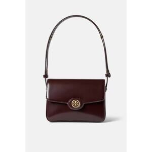 The Robinson Spazzolato Convertible Shoulder Bag by Tory Burch is a sleek, structured embossed bag featuring a magnetic button closure and adjustable strap. It has open pockets for easy storage and offers both style and practicality, perfect for day-to-night wear. Materials and Measurements Shoulder bag. Embossed. Magnetic button closure. Open pockets. Adjustable strap. 8.3" W. 6.1" H. 2.4" D. Imported.