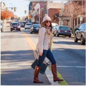 Tory Burch Adeline Riding Boots Color Almond Women's Size 6