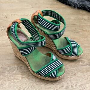 Tory Burch Adonis Wedge Espadrilles Green Stripe