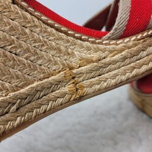 Tory Burch Adonis Womens Size 8.5 Red Blue Stripe Canvas Espadrille Wedge.