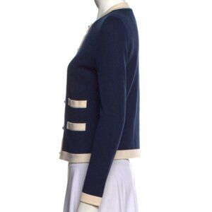 Tory Burch "Ahoy" Nautical Navy Wool Cropped Cardigan w/ Pearl Button Accents