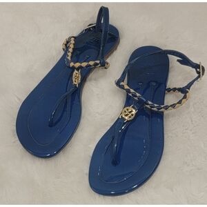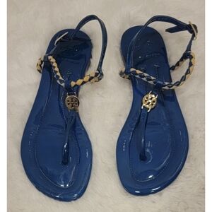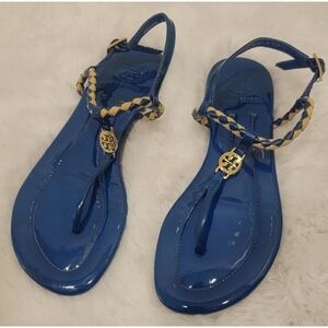 Tory Burch Aine Royal Blue Patent Leather T-Strap Sandals Size 6.5