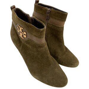 Tory Burch Alaina Olive Green Suede Ankle Boots Size 8.5M X10678 EUC Zip