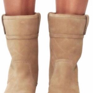 Tory Burch Alana Split Shearling Suede Mid Calf Boots