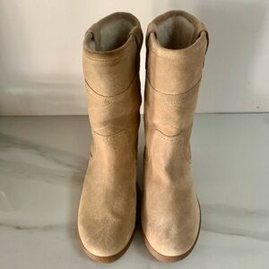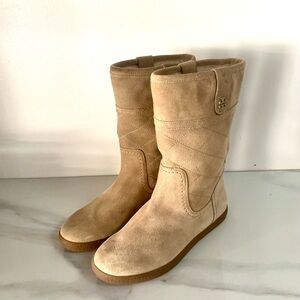 Tory Burch Alana Suede Shearling Mid Calf Boots Sz 6 Women