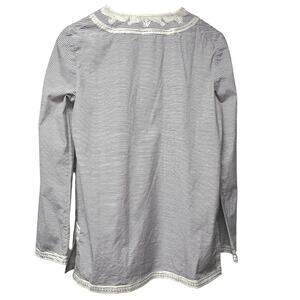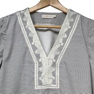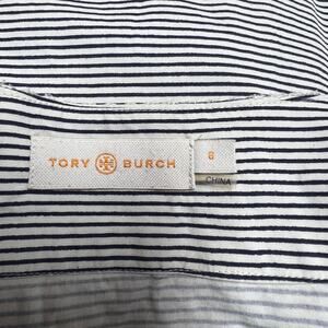Tory Burch Aleksi Skinny Stripe Navy Ivory Embroidered V-Neck Tunic Top Size 6