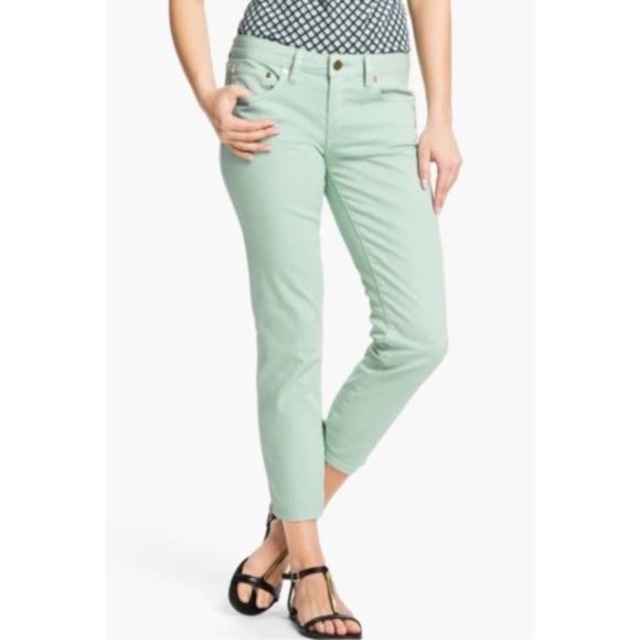 Tory Burch Alexa Cropped Ankle Skinny Jeans Pants Mint Green Size 29 EUC