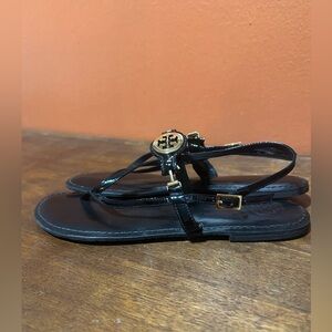 Tory Burch Ali Thong Sandal, Black patent leather, Women’s size 8.5M