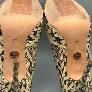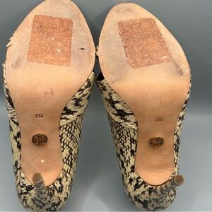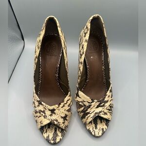 Tory Burch All Leather Snakeskin Peep Toe Pumps Size: 8