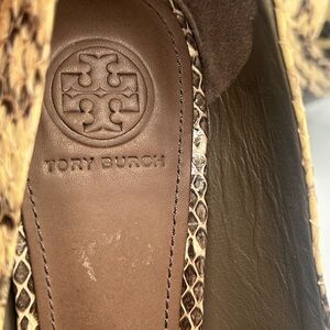 Tory Burch All Leather Snakeskin Peep Toe Pumps