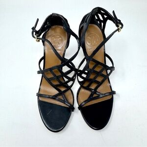Step out in style with these elegant black strappy heels. Perfect for any occasion.