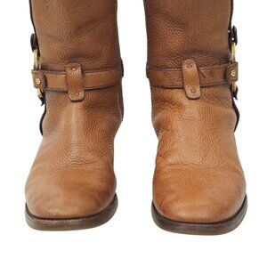 Tory Burch Amanda Tall Riding Boots READ Brown Leather Size 6.5 Side Zip Logo