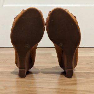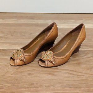 Authentic Tory Amanda wedge with 3 inch heel. Only worn about 5 times. Perfect for spring/summer. There are a few small dirty marks on sides near heels you can see in pics. They can probably be cleaned off. Perfect shoe for spring/summer! Original box not included
