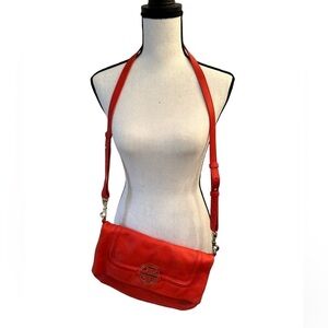 Tory Burch Amanda fold over or crossbody bag. Removable strap so can be a beautiful clutch. Gold hardware with magnetic closure in a deep redish orange color.