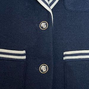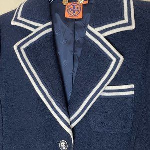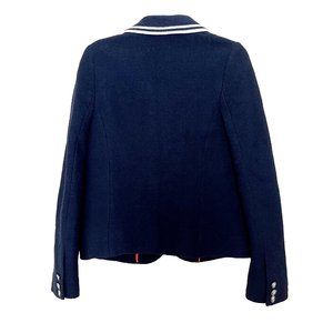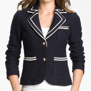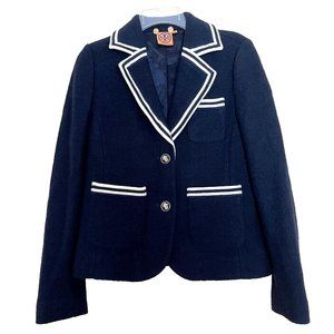 Tory Burch Amara Trimmed Navy Nautical Wool Blazer Jacket Small Old Money Office